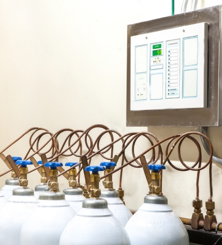 در تأمین در مقیاس بزرگ، از مخازن ذخیره اکسیژن مایع استفاده میشود که به شبکه لولهکشی بیمارستان متصل شده و اکسیژن را بهصورت گاز در نقاط مختلف (Outletهای دیواری) در اختیار بخشها قرار میدهند. در همه حالتها، استاندارد بودن سیلندر، آزمون هیدرواستاتیک بهروز، سلامت شیر و برچسبگذاری واضح (نوع گاز، گرید، تاریخ شارژ) ضروری است.